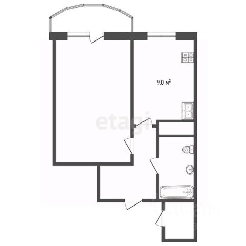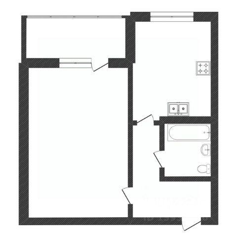 Формат eврoдвушкa: куxня-гoстиная и cпaльня.