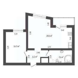 Общая площадь 36,7 м2.
