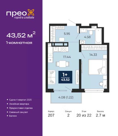Продается 1-комн. квартира от застройщика с предчистовой отделкой в ЖК "Прео" на 18 этаже. Общая площадь: 40.94 кв.м., жилая: 15.08 кв.м., площадь просторной кухни-столовой: 14.08 кв.м. Все окна выходят на одну сторону. В квартире один балкон, один совмещенный санузел. Высота потолков 2.7 м. Дом монолитный, двухподъездный, высотой 22 этажа. Квартира находится во 2-й секции в корпусе 207. На этаже 8 квартир. В подъезде 1 пассажирский и 1 грузовой лифт. Окончание строительства - 4 квартал 2025 года. Оформление сделки по договору долевого участия. Преображенский — один из самых привлекательных районов для жизни! Это полностью самостоятельный жилой район с точки зрения инфраструктуры. Преображенский находится между Московским и Червишевским трактами в квартале улиц Закалужская — Вьюжная — Александра Протозанова. Не нужно ждать, когда появится инфраструктура — переезжайте на всё готовое. Вблизи расположены действующие школа и детский сад. В этом году откроется еще один сад, а в следующем году — школа. По соседству с Преображенским запланировано строительство городского парка "Комарово" площадью 38 гектар. За 10 минут можно доехать на автомобиле до крупных ТРЦ: "Лента", "Кристалл", "Леруа Мерлен", "Метро" и "Ашан". С 2018 года в районе открыт Соседский центр — пространство, созданное для формирования добрососедской среды, совместного досуга, общения и реализации соседских инициатив. Здесь проходят встречи соседей, а также сами жители района организовывают мероприятия. Организатором такого события может стать любой желающий. В квартирах выполнена качественная предчистовая отделка. Гладкие стены с финишным выравниванием по маякам. Ровный потолок для установки натяжного потолка. Установлены пятикамерные окна с двойным стеклопакетом (3 стекла). Дизайнерские холлы с видеонаблюдением, безбарьерным и прозрачным входом всегда светло и спокойно. На первом этаже есть просторные колясочные, где все жители могут оставлять свои коляски и велосипеды. В Преображенском есть всё, что нужно для активного отдыха и занятий спортом. Мы сделали большое футбольное поле с безопасным покрытием. Также установили хоккейный корт, который оборудован по всем необходимым стандартам. Во дворах можно делать упражнения на специальных площадках с турниками. Весь район мы обустроили велодорожками, которые связаны в единый маршрут. У нас есть сухие фонтаны, бьющие из земли, деревья, веревки, сетки, скалодром, газон, песок и резинка — осталось просто дать своему ребенку право на свободную игру. По-настоящему хорошие дворы — это те, которые дети предпочитают соцсетям и телевизору. Аккредитация в банках: ПАО "Банк Уралсиб", ПАО Банк "ВТБ", "Сбербанк России", ОАО "Альфа-Банк", ПАО "Газпромбанк" и других. #Z6A2ve