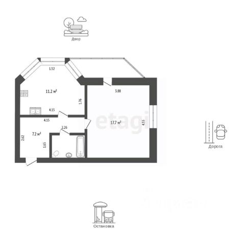 Пешком до центра 30 минут, до ТРЦ Гудвин 15 минут, до ТЦ Магеллан 10 минут.