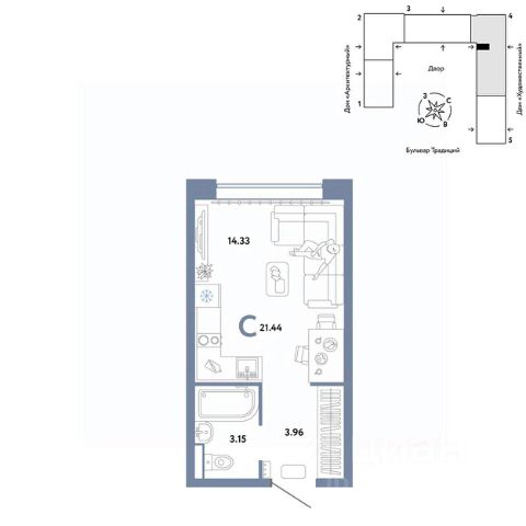 Новая квартира в ЖК "Домашний" напрямую от федеральной группы компаний "Страна Девелопмент". Финансовый партнер — банк "ДОМ.РФ". Продается 1комнатная квартира на 9 этаже от застройщика Страна Девелопмент. Площадь квартиры 21,44 кв. м. ЖК "ДОМАШНИЙ" Жилой комплекс "Домашний" это первый цифровой район в Сибири, где жители заходят в парадные по Face ID, автомобили заезжают в паркинг по сканированию номера, а лифт автоматически спускается на первый этаж при открытии домофона. Даже во дворах — USB-розетки и беседки с подогревом. ПРЕИМУЩЕСТВА -Школа, зеленый сквер и пешеходный бульвар прямо внутри квартала -Закрытые дворы у каждого дома для активного и спокойного отдыха -Охрана, видеонаблюдение 24/7 и доступ к камерам в мобильном приложении -Сквозные парадные с прозрачными входными группами, колясочными и велосипедными -Паркинг с въездом по считыванию номеров, системой контроля выбросов CO2, тележками для покупок и велопарковкой -Торговая галерея на первом этаже дома ОТДЕЛКА Квартиры сдаются с предчистовой отделкой: произведена разводка электричества и отопления, выполнена стяжка пола, стены выровнены "под маяк", установлены розетки, выключатели и радиаторы. ДИЗАЙНЕРСКАЯ ОТДЕЛКА При покупке квартиры в ЖК "Домашний" можно включить стоимость ремонта в ипотеку. Пять вариантов на выбор: Хлопковая нить, Серый шторм, Белый камень, Шалфей, Голубой вереск. СПОСОБЫ ПОКУПКИ Сотрудники "Страна Девелопмент" будут сопровождать вас на каждом этапе сделки, помогут получить одобрение по ипотеке или снизить ежемесячный платеж. - ипотека - материнский капитал -100% оплата наличными