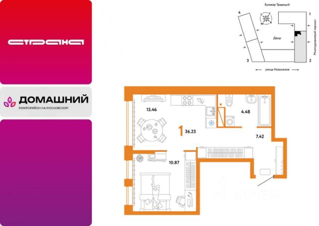 Новая квартира в ЖК "Домашний" напрямую от федеральной группы компаний "Страна Девелопмент". Финансовый партнер — банк "ДОМ.РФ". Продается 1комнатная квартира на 11 этаже от застройщика Страна Девелопмент. Площадь квартиры 37,82 кв. м. ЖК "ДОМАШНИЙ" Жилой комплекс "Домашний" это первый цифровой район в Сибири, где жители заходят в парадные по Face ID, автомобили заезжают в паркинг по сканированию номера, а лифт автоматически спускается на первый этаж при открытии домофона. Даже во дворах — USB-розетки и беседки с подогревом. ПРЕИМУЩЕСТВА - Школа, зеленый сквер и пешеходный бульвар прямо внутри квартала - Закрытые дворы у каждого дома для активного и спокойного отдыха - Охрана, видеонаблюдение 24/7 и доступ к камерам в мобильном приложении - Сквозные парадные с прозрачными входными группами, колясочными и велосипедными - Паркинг с въездом по считыванию номеров, системой контроля выбросов CO2, тележками для покупок и велопарковкой - Торговая галерея на первом этаже дома ОТДЕЛКА Квартиры сдаются с предчистовой отделкой: произведена разводка электричества и отопления, выполнена стяжка пола, стены выровнены "под маяк", установлены розетки, выключатели и радиаторы. ДИЗАЙНЕРСКАЯ ОТДЕЛКА При покупке квартиры в ЖК "Домашний" можно включить стоимость ремонта в ипотеку. Пять вариантов на выбор: Хлопковая нить, Серый шторм, Белый камень, Шалфей, Голубой вереск. СПОСОБЫ ПОКУПКИ Сотрудники "Страна Девелопмент" будут сопровождать вас на каждом этапе сделки, помогут получить одобрение по ипотеке или снизить ежемесячный платеж. - ипотека - материнский капитал -100% оплата наличными