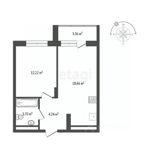 Отличная планировка - просторная кухня-гостиная и стильная спальня.