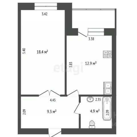 Удобная площадь 44,1 м² оптимальное пространство для одного человека или пары. Всё продумано до мелочей!