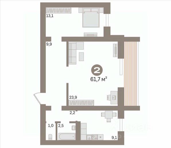 Представляю Вашему вниманию приятнейшую очаровательную однокомнатную квартиру в ЖК комфорт-класса Жуков в одном из самых популярных микрорайонов города - Дом Обороны! Гармоничная функциональная планировка включает в себя: кухню-столовую 10 кв.м., жилую комнату - 17 кв.м. с нишей под шкаф-купе, комфортный санузел - 4,5 кв.м. Застекленный балкон. Отличная высота потолков - 2.75 м усиливает ощущение воздуха и простора. В квартире выполнен достойный современный ремонт в приятной цветовой гамме. Практически не требует освежения. В квартире установлены современные радиаторы отопления, горизонтальная разводка теплоснабжения (индивидуальный счетчик тепла). Из окон открывается потрясающий вид во двор и на любимый город. Совсем рядом парк "Затюменский" - здесь приятно совершать утренние пробежки летом, покататься на лыжах зимой. ЖК оборудован современными инженерными коммуникациями и автономными газовыми котельными, что позволяет снизить затраты на коммунальные услуги. Установлена система солнечных батарей для мест общего пользования. Закрытый двор, два крытых паркинга, видеонаблюдение. Отличная транспортная развязка - буквально 10-15 минут и Вы в Центре города. Остановка общественного транспорта находится прямо возле жилого комплекса. Сложившаяся развитая инфраструктура. Рядом школа, садик, поликлинника, все в реальных 5-10 минутах, плюс университет. Последний видовой этаж, абсолютно никакого шума. Квартира ждет встречи со своим новым счастливым обладателем. С удовольствием проведу показ в удобное для Вас время! МЫ ГАРАНТИРУЕМ ФИНАНСОВУЮ БЕЗОПАСНОСТЬ ДЛЯ НАШИХ КЛИЕНТОВ. Код пользователя: 61079 Номер в базе: 12239074 1-комнатная квартира (вторичный рынок) в Тюмени.