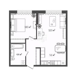 Отличная планировка - просторная кухня-гостиная и стильная спальня.