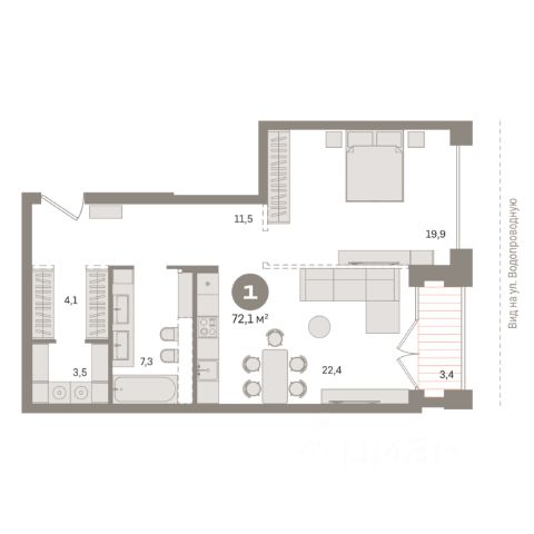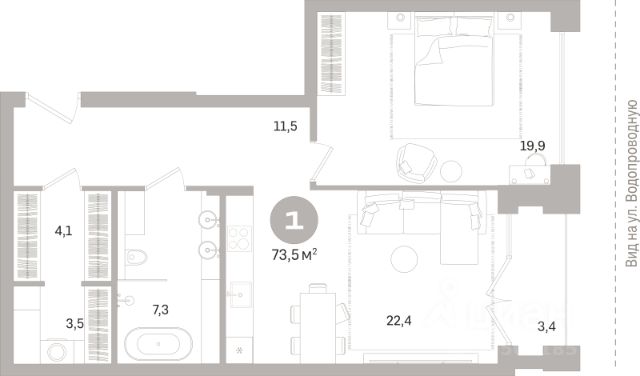 Продаются 1-комнатные апартаменты в сданном доме (Б2), срок сдачи: IV-кв. 2021, общей площадью 73.5 кв.м., на 4 этаже. Квартал "1А Первомайская" расположен на пересечении трех улиц: Первомайская, Советская и Сакко. Проект создает интересный городской маршрут, связывая набережную реки и центральную площадь. Квартал - новый тип общественно--делового пространства для Тюмени.