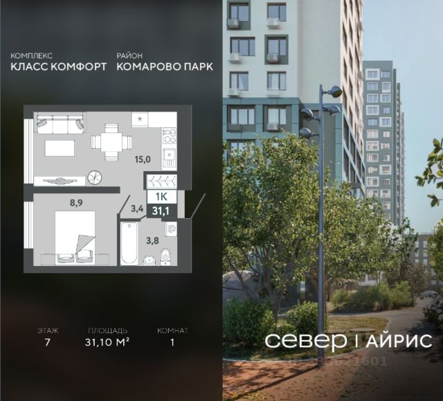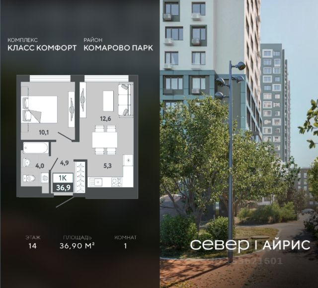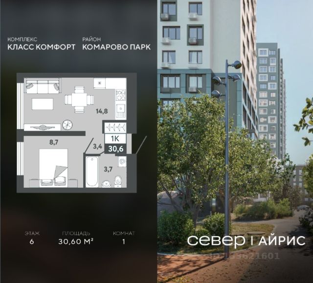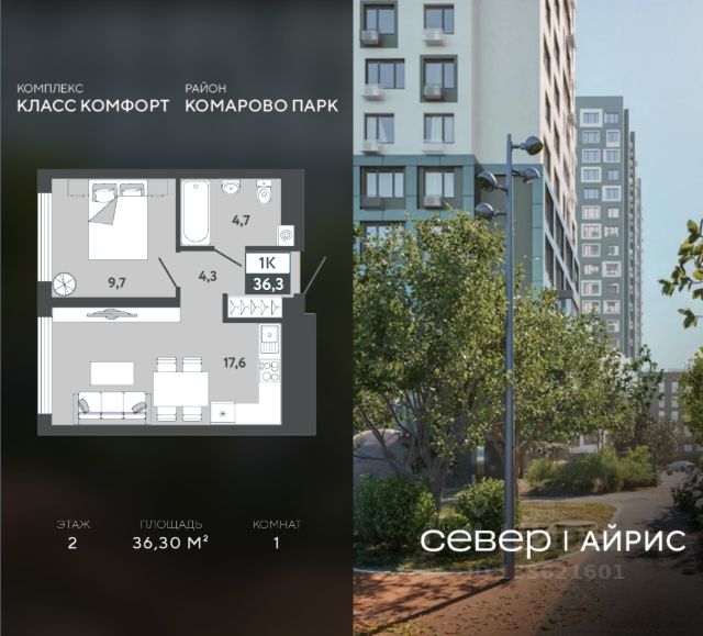 Продаётся квартира площадью 36.50 м2 в жилом комплексе "Айрис". Квартира находится на 2 этаже, жилая площадь квартиры 9.30 м2, площадь просторной кухни — 18.80 м2. Среди особенностей планировки — изолированные комнаты с окнами на одну сторону, 1 совмещённый санузел. Срок сдачи — III кв. 2027 Жилой комплекс "Айрис" — это: - фиджитал-квартал в Тюмени - дома высотой от 7 до 25 этажей - квартиры с системой "Умный дом" - цифровые технологии как элемент благоустройства Окружение В нескольких минутах ходьбы от дома — парк "Комарово" с волейбольной площадкой, открытым кинотеатром, зонами для барбекю и катком. Неподалеку от Airis находится центр иппотерапии, где можно покататься на лошадях и взять уроки верховой езды. На территории Airis появится собственный парк с прогулочными аллеями. Инфраструктура В 5-10 минутах от квартала открыты 2 детских сада и гимназия. На шопинг можно отправиться в торговые комплексы "Колумб" и "Кристалл" — они находятся недалеко от дома. Благоустройство Уютный двор — приватное пространство для жителей. В беседках можно будет почитать книгу в тишине, а в тени деревьев устроиться на пикник. На крыше многоуровневого паркинга будет лаунж-зона с кинотеатром, баскетбольная площадка и воркаут-пространство, где можно позаниматься с виртуальным тренером — достаточно отсканировать код. Лобби Интерьеры лобби выполнены в пастельных тонах с элементами фиджитал-решений. Для отдыха и ожидания гостей создана лаунж-зона. Также есть гостевые санузлы. Колясочные Возвращайтесь налегке после прогулки с малышом — оставить коляску можно в специальном помещении на первом этаже. Кладовые Для сезонных и габаритных вещей предусмотрены отдельные кладовые на цокольном этаже. В каждом помещении уже проведено электричество и выполнена стяжка пола. Паркинг На территории — два многоуровневых наземных паркинга. Один из них примыкает к домам — из него можно напрямую пройти в парадные. Планировки Планировки квартала — от компактной студии до сити-хауса с собственным палисадником — соответствуют любым жизненным сценариям. Можно выбрать квартиры с террасами и готовыми дизайнерскими интерьерами.