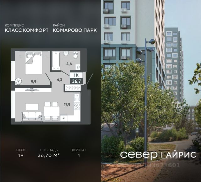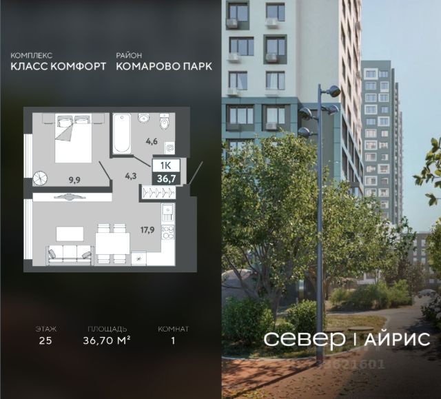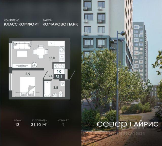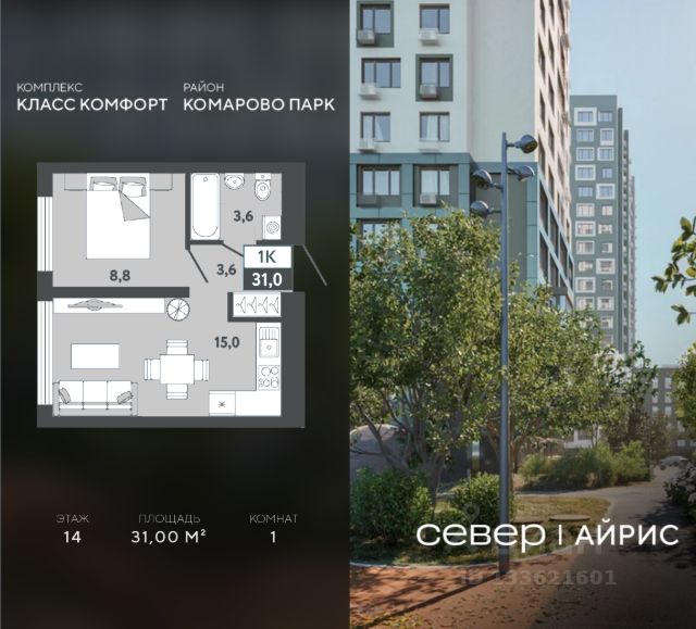 Продаётся квартира площадью 30.60 м2 в жилом комплексе "Айрис". Квартира находится на 4 этаже, жилая площадь квартиры 8.70 м2, площадь просторной кухни — 14.80 м2. Среди особенностей планировки — изолированные комнаты с окнами на одну сторону, 1 совмещённый санузел. Срок сдачи — III кв. 2027 Жилой комплекс "Айрис" — это: - фиджитал-квартал в Тюмени - дома высотой от 7 до 25 этажей - квартиры с системой "Умный дом" - цифровые технологии как элемент благоустройства Окружение В нескольких минутах ходьбы от дома — парк "Комарово" с волейбольной площадкой, открытым кинотеатром, зонами для барбекю и катком. Неподалеку от Airis находится центр иппотерапии, где можно покататься на лошадях и взять уроки верховой езды. На территории Airis появится собственный парк с прогулочными аллеями. Инфраструктура В 5-10 минутах от квартала открыты 2 детских сада и гимназия. На шопинг можно отправиться в торговые комплексы "Колумб" и "Кристалл" — они находятся недалеко от дома. Благоустройство Уютный двор — приватное пространство для жителей. В беседках можно будет почитать книгу в тишине, а в тени деревьев устроиться на пикник. На крыше многоуровневого паркинга будет лаунж-зона с кинотеатром, баскетбольная площадка и воркаут-пространство, где можно позаниматься с виртуальным тренером — достаточно отсканировать код. Лобби Интерьеры лобби выполнены в пастельных тонах с элементами фиджитал-решений. Для отдыха и ожидания гостей создана лаунж-зона. Также есть гостевые санузлы. Колясочные Возвращайтесь налегке после прогулки с малышом — оставить коляску можно в специальном помещении на первом этаже. Кладовые Для сезонных и габаритных вещей предусмотрены отдельные кладовые на цокольном этаже. В каждом помещении уже проведено электричество и выполнена стяжка пола. Паркинг На территории — два многоуровневых наземных паркинга. Один из них примыкает к домам — из него можно напрямую пройти в парадные. Планировки Планировки квартала — от компактной студии до сити-хауса с собственным палисадником — соответствуют любым жизненным сценариям. Можно выбрать квартиры с террасами и готовыми дизайнерскими интерьерами.