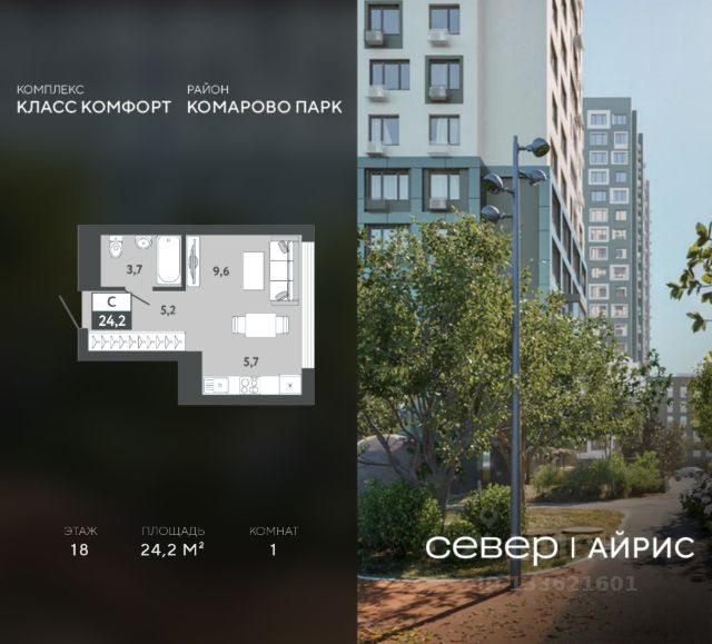Продаётся квартира площадью 24.7 м2 в жилом комплексе "Айрис". Квартира находится на 8 этаже, жилая площадь квартиры 9.6 м2, площадь просторной кухни — 5.9 м2. Среди особенностей планировки — изолированные комнаты с окнами на одну сторону, 1 совмещённый санузел. Срок сдачи — III кв. 2027 Жилой комплекс "Айрис" — это: - фиджитал-квартал в Тюмени - дома высотой от 7 до 25 этажей - квартиры с системой "Умный дом" - цифровые технологии как элемент благоустройства Окружение В нескольких минутах ходьбы от дома — парк "Комарово" с волейбольной площадкой, открытым кинотеатром, зонами для барбекю и катком. Неподалеку от Airis находится центр иппотерапии, где можно покататься на лошадях и взять уроки верховой езды. На территории Airis появится собственный парк с прогулочными аллеями. Инфраструктура В 5-10 минутах от квартала открыты 2 детских сада и гимназия. На шопинг можно отправиться в торговые комплексы "Колумб" и "Кристалл" — они находятся недалеко от дома. Благоустройство Уютный двор — приватное пространство для жителей. В беседках можно будет почитать книгу в тишине, а в тени деревьев устроиться на пикник. На крыше многоуровневого паркинга будет лаунж-зона с кинотеатром, баскетбольная площадка и воркаут-пространство, где можно позаниматься с виртуальным тренером — достаточно отсканировать код. Лобби Интерьеры лобби выполнены в пастельных тонах с элементами фиджитал-решений. Для отдыха и ожидания гостей создана лаунж-зона. Также есть гостевые санузлы. Колясочные Возвращайтесь налегке после прогулки с малышом — оставить коляску можно в специальном помещении на первом этаже. Кладовые Для сезонных и габаритных вещей предусмотрены отдельные кладовые на цокольном этаже. В каждом помещении уже проведено электричество и выполнена стяжка пола. Паркинг На территории — два многоуровневых наземных паркинга. Один из них примыкает к домам — из него можно напрямую пройти в парадные. Планировки Планировки квартала — от компактной студии до сити-хауса с собственным палисадником — соответствуют любым жизненным сценариям. Можно выбрать квартиры с террасами и готовыми дизайнерскими интерьерами.