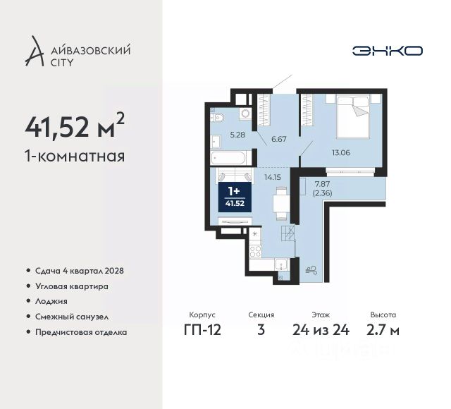 Просторная 1-комн. квартира с предчистовой отделкой в ЖК "Айвазовский City" на 2 этаже. Общая площадь: 51.1 кв.м., жилая: 10.9 кв.м., площадь просторной кухни-столовой: 24 кв.м. Квартира угловая, окна oбecпeчивaют paвнoмepнoe ocвeщeниe в тeчeниe дня. В квартире одна лоджия, один совмещенный санузел. Высота потолков 2.72 м. Дом монолитный, многоподъездный, переменной этажности, от 9 до 24 этажей. Квартира находится в 1-й секции высотой 24 этажа в корпусе ГП-7. На этаже 6 квартир. В подъезде 1 пассажирский и 2 грузовых лифта. Окончание строительства - 3 квартал 2026 года. Оформление сделки по договору долевого участия. Новый жилой район располагается в живописном месте на берегу Туры в центральной части города. Принципиально новое пространство для жизни в центре современного города для тех, чьи мечты сбываются, кто нацелен на постоянный рост, перемены к лучшему для себя и своих близких. Каждая деталь Айвазовский City вдохновляет и заряжает на новые свершения: авторская архитектура, сбалансированная продуманная инфраструктура, дизайнерские дворы со спортивными и детскими площадками, парковые зоны с фонтанами, водный канал, украшающий центральный прогулочный маршрут района и многое другое. В 2019 года проект стал лауреатом престижной премии Urban Awards 2019 в номинации "Лучший строящийся региональный жилой комплекс бизнес-класса". Главная особенность Айвазовский City - соседство разных архитектурных школ в рамках одного дома. Изысканная классика, выразительная эклектика и оригинальный модерн - жить в одном из таких домов настоящий повод для гордости. Айвазовский City это идеальное сочетание комфорта, технологий и развитой инфраструктуры. Вход в подъезд возможен с улицы и со двора. Отправляясь на работу или за покупками, жители могут выйти с внешней стороны дома, а для прогулки с ребенком со стороны двора. Экологически чистые материалы и энергосберегающие технологии, качественное освещение общественных зон, видеонаблюдение по всей территории жилого района (в том числе в подъездах, лифтах и в подземном паркинге), закрытые дворы с доступом только для жителей Айвазовский City. Часть домов в Айвазовский City будут оснащены подземным паркингом. Востребованный в нашем климатическом поясе формат хранения автомобилей защитит собственность владельца в любое время года. Аккредитация в банках: ПАО Банк "ВТБ", ОАО "Альфа-Банк", ПАО "Газпромбанк", "Сбербанк России", ПАО "Промсвязьбанк" и других. #zsf6sC