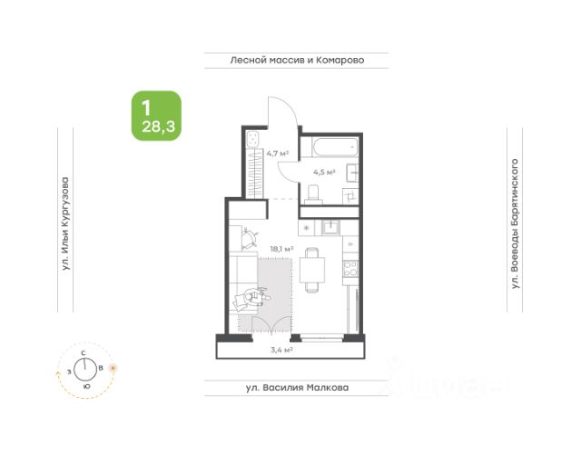 Квартира расположена в современном жилом комплексе Ботаника — новом районе с продуманной инфраструктурой и высоким уровнем комфорта. ЖК отличается лаконичным архитектурным стилем, закрытыми благоустроенными дворами без машин и развитой внутренней территорией: здесь оборудованы детские площадки для разных возрастов, зоны отдыха с зелеными насаждениями и просторные входные группы. Главное преимущество комплекса — собственный сквер на территории и непосредственная близость к крупному эко-парку "Комарова-парк", что создает ощущение гармонии с природой без удаления от городской среды.
