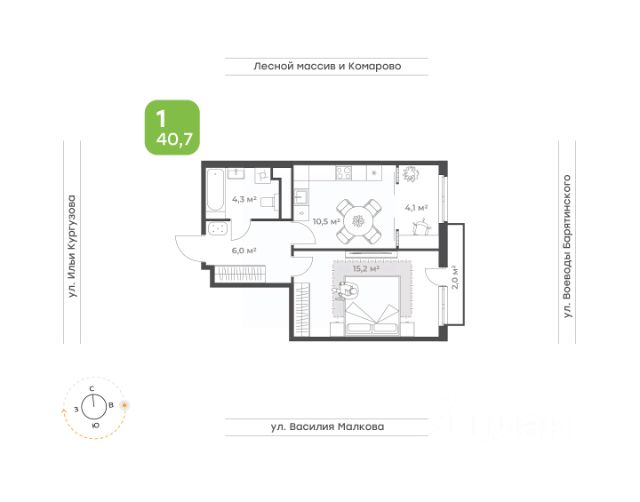 Квартира 1 с видом на двор и природный сквер Если вы выбрали эту квартиру, то вы счастливый обладатель идеальной квартиры евроформата! • Удобная кухня-гостиная с видом на сквер • Французский балкон • Спальня с выделенной зоной, которую вы можете использовать как кабинет или зону отдыха • Вместительный коридор с нишей под шкаф-купе • Удобный санузел, где вместится все необходимое