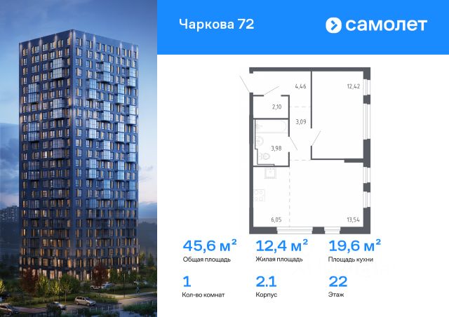 Строим кварталы для жизни с заботой о будущем. Предлагается 1-комнатная квартира комфорт-класса 46,1 кв.м в корпусе 1.4 на 14 этаже, в ЖК "Чаркова 72" Квартира с чистовой отделкой. Доступность дополнительных опций уточняйте у застройщика. Приобрести квартиру возможно по специальным акциям от застройщика, с текущими условиями акций можно ознакомиться в блоке "Акций". Цена динамическая и может отличаться, уточняйте актуальность у застройщика. Идеальное сочетание городского комфорта и размеренной жизни — квартал "Чаркова 72" на северо-востоке города. В дизайне 17-24-этажных домов с панорамными балконами нашли отражение нотки сибирской природы. От "Чаркова 72" удобно добираться до центра города — всего 17 минут пути. А в 2 минутах от дома находится Тобольский тракт. Для семейного отдыха отлично подойдет парк Гагарина — он находится в 7 минутах от квартала. В закрытых дворах тихо и уютно — все авто остались на одном из 4 многоуровневых паркингов, которые находятся за территорией квартала. Можно спокойно гулять по бульвару и заниматься йогой на спортивной площадке. На первых этажах домов — кафе и магазины. Рядом с проектом — детские сады и школы, городская поликлиника и МФЦ. Во всех квартирах есть выводы под кондиционеры, на подземных этажах — индивидуальные кладовые, на первых — места для хранения велосипедов и колясок. В квартирах можно выбрать варианты отделки: чистовая, черновая и улучшенная из материалов повышенного класса.