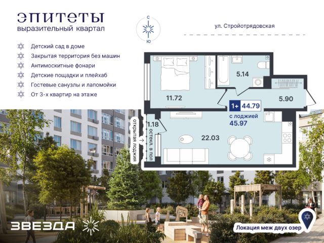 Выразительный квартал "Эпитеты" — сбалансированный проект, который сочетает атмосферу размеренной загородной жизни, насыщенную инфраструктуру и очарование природных локаций. ЖК комфорт-класса расположен на пересечении улиц Западносибирская и Стройотрядовская в окружении озер и зеленых массивов. Эклектичный стиль фасадов и соразмерная человеку архитектура станут украшением всего района.
