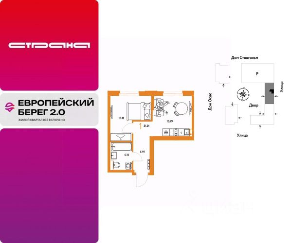 Объявление от застройщика Страна Девелопмент. Покупка квартиры защищена банком. Продается 1комнатная квартира на 20 этаже от застройщика Страна Девелопмент. Площадь квартиры 33,15 кв. м. Стоимость указана без учета акций. Европейский берег 2.0. — это продолжение легендарного жилого комплекса Европейский берег. Он включает все, что нужно для жизни, и даже больше. Этот квартал для тех, кто не готов тратить время на ненужное, жертвовать одним ради другого. Для тех, кто хочет получить все и сразу. Именно поэтому генеральная идея проекта — жилой квартал все включено. Все преимущества включены. Никаких исключений. ПРЕИМУЩЕСТВА Разнообразие планировок: от классических до квартир с мастер-спальней и террасами. Подземный паркинг с кладовыми, охраной и видеонаблюдением 24/7. Ремонт от застройщика: 5 вариантов на выбор. Закрытый двор с площадками и зонами отдыха: мост-акведук, тренажёры, лабиринты, гамаки и шезлонги. ОТДЕЛКА Базовая отделка или готовый ремонт от застройщика. В базовой отделке все черновые работы выполнены, подведены коммуникации, стены оштукатурены под маяк. В ремонт от застройщика входит 5 вариантов отделки, уже включено всё необходимое: от сантехники до кондиционера. СПОСОБЫ ПОКУПКИ Сотрудники "Страны Девелопмент" будут сопровождать вас на каждом этапе сделки, помогут получить одобрение по ипотеке или снизить ежемесячный платеж. - ипотека - материнский капитал - 100% оплата наличными - рассрочка - обмен — это выкуп вашей старой квартиры и зачисление полученных денежных средств в счет стоимости новой квартиры или в качестве первоначального взноса по ипотеке.