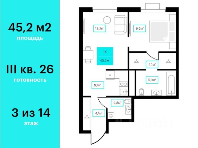 Продаётся 1-комнатная квартира в строящемся доме (Дом 6к2), срок сдачи: III-кв. 2026, общей площадью 45.2 кв.м., на 3 этаже. Новый жилой комплекс "Futuro" от застройщика "newton" расположен в г. Тюмень на Ставропольской улице.