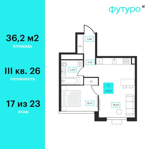 Продаётся 1-комнатная квартира в строящемся доме (Дом 6к1), срок сдачи: III-кв. 2026, общей площадью 36.2 кв.м., на 17 этаже. Новый жилой комплекс "Futuro" от застройщика "newton" расположен в г. Тюмень на Ставропольской улице.
