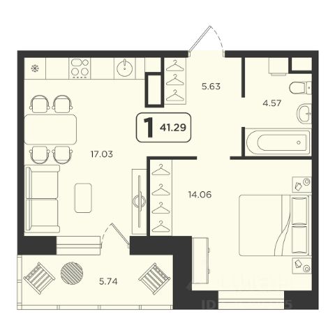Продаётся 1-комнатная квартира в строящемся доме (ГП-4), срок сдачи: IV-кв. 2027, общей площадью 41.5 кв.м., на 5 этаже. Расположение, транспортная доступность Жилой комплекс "Горизонт" - это микрорайон, в состав которого входит девятнадцать 17-этажных односекционных монолитно-кирпичных зданий бюджетного класса. Микрорайон находится в северной части Тюмени, в Центральном административном округе, рядом с улицами Дружбы, Мельникайте и Тобольским трактом. Здесь ходит более десяти маршрутов общественного транспорта, на котором можно добраться до любого района города. К центральной части Тюмени от "Горизонта" можно доехать менее чем за пятнадцать минут. Инфраструктура Рядом с "Горизонтом" находятся: детские сады 165, 28, 63, детский сад-ясли 172, лицей 81, школа 36, поликлиника 8, супермаркеты "Магнит" и "Пятерочка", торговые центры "Ватутинский", "Северный", "Престиж". В соседних микрорайонах множество объектов инфраструктуры: торгово-развлекательный центр "Тюмень Сити Молл", (где находятся гипермаркеты "Ашан Сити", "Эльдорадо", десятки магазинов и бутиков, кафе, рестораны, боулинг, ручной зоопарк и кинотеатр), торговые центры "Зеленый берег", "Абсолют", колледж водного транспорта, гипермаркеты "Лента", "Леруа Мерлен", рынок "Лесная сказка", Дом культуры "Водник", спорткомплекс "Гагаринский" с 25-метровым бассейном, кроссфит-залом и паровой комнатой, спортивно-оздоровительный комплекс "Автотеплотехник", филиал Сбербанка, школа 48 им. Д.М. Карбышева. Экологическая ситуация в месте расположения "Горизонта" оценивается как очень хорошая. Микрорайон находится практически на границе с парком им. Гагарина, в нескольких сотнях метров от озер Алебашево и Круглое, рядом с Ватутинской рощей, садом Дружба и рекой Тура. Из окон зданий комплекса открываются живописные виды на великолепные окрестности. Надежность застройщика Микрорайон "Горизонт" построила тюменская компания "Аква", входящая в состав группы компаний ARSIB holding group, история которой началась в 1957 году с предприятия "Тюменьоблснабсбыт" Группа компаний ARSIB holding group занимается несколькими видами деятельности (сельским хозяйством, производством продуктов питания, торговлей, девелопментом), ей принадлежит ряд крупных торговых и торгово-развлекательных центров в Тюмени, а также Тюменский молочный завод. Микрорайон "Горизонт" - это первый проект компании ARSIB holding group на тюменском рынке жилищного строительства. Архитектурная концепция "Горизонта" была разработана компанией "Реконструкция 2000 и К". Основные строительно-монтажные работы при возведении микрорайона выполнила компания ООО "Строительно-монтажное управление 2". Архитектура В домах микрорайона "Горизонт" представлены студии и квартиры с количеством комнат от одной до трех площадью от 23,90 кв. м до 81,37 кв. м с потолками высотой 270 см. Все квартиры продаются с предчистовой отделкой: с входными металлическими сейф-дверями, стяжкой пола, остекленными балконами и лоджиями, горизонтальной разводкой труб отоплен Продается 1-комнатная квартира в ЖК Горизонт в Тюмени.