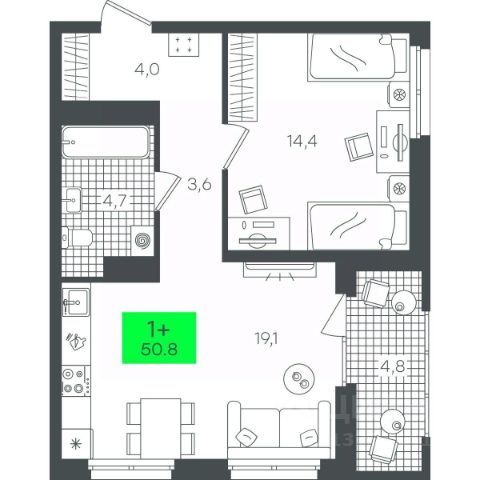 прекрасная квартира формата 1+ отличной планировки. Просторная кухня-гостиная 23,6 м. кв. с выходом на остекленную лоджию. Спальная комната площадью 15,8 кв.м., где можно дополнительно разместить гардеробную. Так же на входе в квартиру - удобная ниша под гардероб. Совместный сан.узел, где можно вместить всё самое необходимое. В квартире выполнена улучшенная черновая отделка: ровные светлые стены, финишная стяжка пола, разводка всех коммуникаций, установлены счетчики: вода, электричество (телеметрия), тепло. На площадке всего 6 квартир, Шикарный вид из окна - на пешеходный бульвар и эко-парк. Закрытая система двора, видеонаболюдение, сквозные подъезды, на первом этаже- колясочная и санузел. Удачное расположение дома, рядом с будущим эко-парком. В пешей доступности - школы, сады, поликлиника. Звоните, договоримся о просмотре!