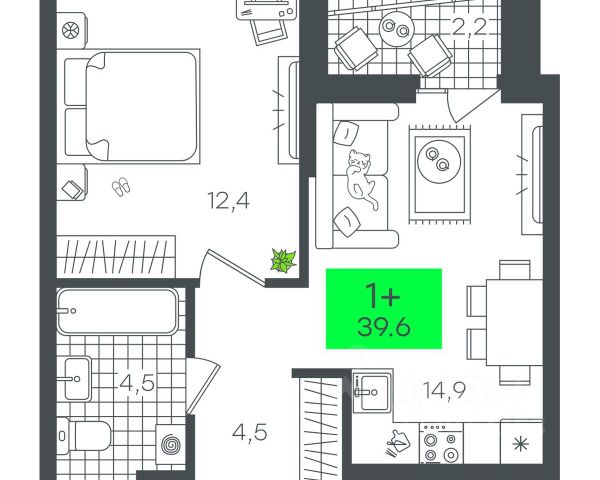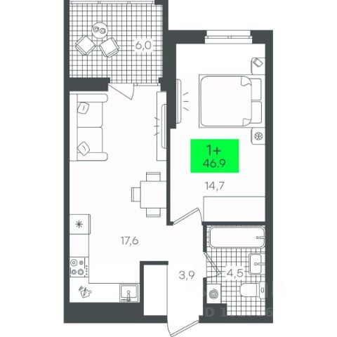 Предлагается к покупке просторная современная квартира формата 1+, площадь которой 49 м.кв. При этом, площадь спальни более 17 кв.м. и кухня-гостиная, порядка 22 м.кв. Видовая квартира. Окна-на парк.