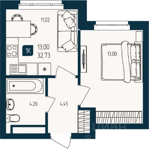 Продаётся 1-комнатная квартира в строящемся доме (Дом Семейный (ГП-3)), срок сдачи: III-кв. 2027, общей площадью 42.96 кв.м., на 1 этаже. Новый жилой комплекс "Квартал Мятный" от Специализированного застройщика "Юпитер" расположен по адресу: г. Тюмень по ул. Кулибина.