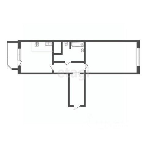 - коридор упирается во вход в кухню, из которой есть второй проход в комнату и на утеплённую лоджию.