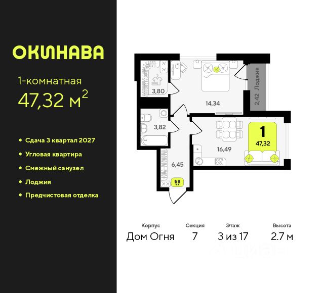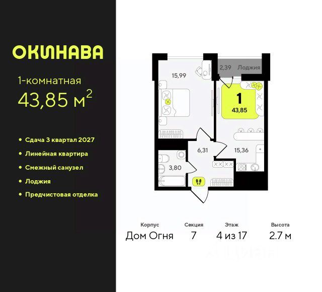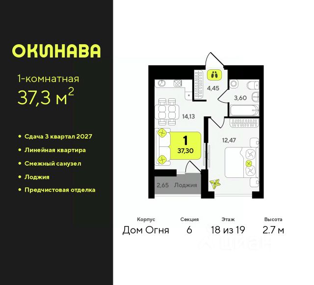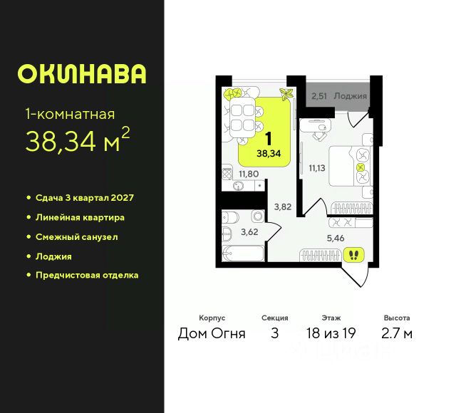 1-комн. квартира от застройщика с предчистовой отделкой в ЖК "Окинава" на 4 этаже. Общая площадь: 39.97 кв.м., жилая: 13.07 кв.м., площадь просторной кухни-столовой: 13.33 кв.м. Все окна выходят на одну сторону. В квартире один совмещенный санузел. Высота потолков 2.7 м. Квартира будет сдана с предчистовой отделкой: на полах стяжка под финишное покрытие, стены подготовлены под покраску или оклейку обоями, разведена вся электрика с подготовкой для установки выключателей и освещения. При желании вы можете заказать отделку под ключ, варианты возможных решений представлены в альбоме фотографий. Дом монолитный, многоподъездный, переменной этажности, от 13 до 19 этажей. Квартира находится в 6-й секции высотой 19 этажей в корпусе Дом Огня. На этаже 12 квартир. В подъезде 2 пассажирских и 1 грузовой лифт. Окончание строительства - 3 квартал 2027 года. Оформление сделки по договору долевого участия. ЖК "Окинава" это не просто жилой комплекс, это остров 4 стихий. Они отражаются во внешнем виде фасадов домов, обустройстве дворов и внутреннем оформлении холлов. Каждая из стихий это отдельный дом. Между домами раскинется большой двухуровневый пешеходный бульвар. Первый уровень прогулочный с местами для отдыха, амфитеатром и фонтанами. На втором уровне расположатся площадки для детей, спортивных игр и тренировок. Квартал будет располагать богатой инфраструктурой: на первых этажах разместятся магазины, пекарни, кофейни, пункты выдачи, аптеки, детские центры, цветочные салоны и многое другое, что сделает жизнь поистине комфортной. В жилом комплексе есть кладовые, а также несколько видов паркинга: уличный гостевой, закрытый теплый и паркинг в стилобате, попасть в который можно на лифте с любого жилого этажа. Дворы в каждом доме отражают его стихию, отличаясь по наполнению. Они дополняют друг друга, образуя единое дворовое пространство жилого комплекса. Закрытая территория, свободная от автомобилей, обеспечит безопасность и спокойный отдых. Холлы оформлены керамогранитом, зеркалами и разноуровневым освещением. Витражные входные группы, мягкие зоны ожидания, видеонаблюдение 24/7, вместительные колясочные и даже лапомойки для питомцев всё это будет в ЖК "Окинава". Жилой комплекс "Окинава" находится в активно развивающемся V заречном микрорайоне, недалеко от озера Алебашево, где в будущем расположится масштабный ивент-парк с зонами отдыха. Удобная транспортная развязка позволит добраться до центра всего за 15 минут. #zWEiBA