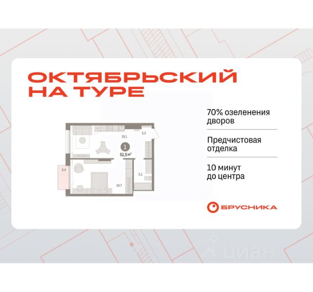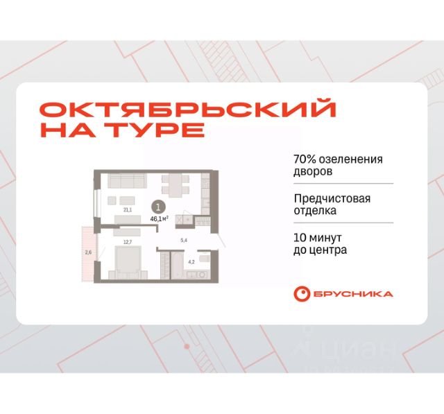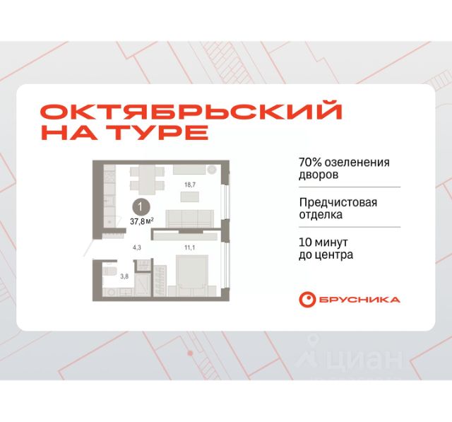 Квартира в счёт первоначального взноса по программе обмена. Квартира с кухней-гостиной и одной спальней в Октябрьском на Туре. Особенности планировки: вид во двор, предчистовая отделка. квартиры в нашей базе: ОКТ09-Ж3.2.1. Район Проект расположен на берегу реки, в одном из самых живописных и экологичных районов Тюмени. За последние годы облик района изменился. По соседству с индивидуальной застройкой выросли многоквартирные дома. При проектировании "Октябрьского на Туре" нашей приоритетной задачей стало сохранение природного ландшафта: мы постарались деликатно вписать в него современную архитектуру. Квартал удачно расположен с точки зрения дорожной инфраструктуры. На автомобиле путь до центра города составит 15 минут. Добраться до набережной и главных тюменских достопримечательностей можно и на общественном транспорте. В пешей доступности находится автобусная остановка. Проект По мастер-плану здесь будет восемь домов. Ядро застройки составляют замкнутые кварталы переменной этажности. Их высотность понижается по мере приближения к реке. На углах участка мы разместили башни-доминанты. Одной из достопримечательностей квартала станет парк на Туре — здесь появится зеленая зона протяженностью около 6 километров для пеших и велопрогулок. Смысловая ось квартала — широкая главная улица с высаженными вдоль неё высокими деревьями. Они создают тень и работают как шумо- и пылезащитные экраны. Это место сосредоточения основных пешеходных и транспортных потоков, на сторону которых мы ориентировали большинство коммерческих помещений. Отсюда жители могут свернуть на тихие соседские улицы и попасть на внутриквартальную площадь — ещё одну точку притяжения.Квартира в счёт первоначального взноса по программе обмена. #2sd38e