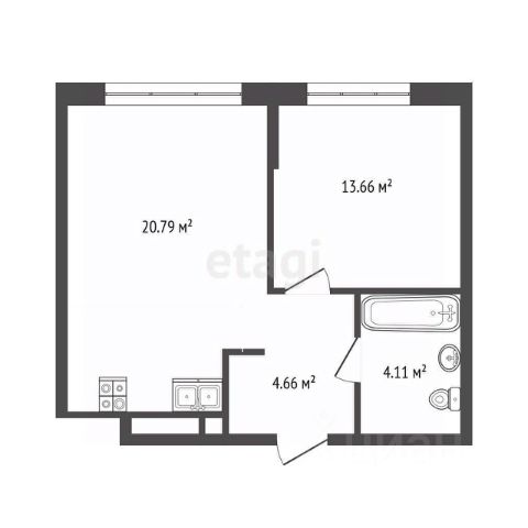 Отличная планировка - просторная кухня-гостиная и стильная спальня.