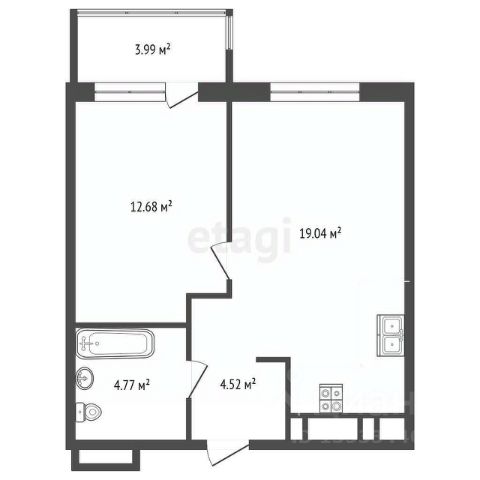 Квартира формата 1+ (кухня-гостиная и одна спальня) с качественным ремонтом расположена в новом жилом комплексе "Румянский" в центральной части города. Общая площадь увеличена за счет просторного панорамного балкона (4 м²), откуда открывается вид на город. Планировка включает кухню-гостиную с большим окном, отдельную спальню и современный санузел, отделанный керамогранитом. В санузле установлена ванна, тропический душ, инсталляция, унитаз, зеркало с подсветкой, предусмотрены выводы под стиральную машину. В квартире никто еще не проживал, все коммуникации и отделка — в идеальном состоянии.