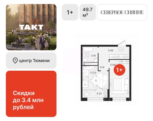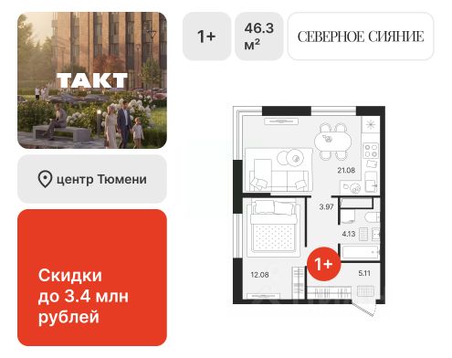 Первичная продажаЕщё фото1-комн. квартира, 46,33 м², 2/17 этажСекция 2 • Сдача корпуса 1 кв. 2028С отделкойЖК «Северное Сияние»сдача ГК: 1 кв. 2028 годаТюменская область, Тюмень, Центральный, мкр. Харьковская (Центральный), Холодильная улица, 237 412 800 ₽160 000 ₽/м²Продается 1 квартира 154 в жилом комплексе Северное Сияние в тихом центре ТюмениАгентство недвижимостиТАКТ+7 989 307-93-...вчеравчера, 16:10