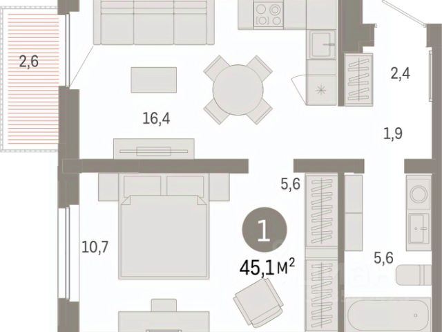 Просторная 1-комн. квартира с предчистовой отделкой в ЖК "Зарека" на 9 этаже. Общая площадь: 45.13 кв.м., жилая: 10.7 кв.м., площадь просторной кухни-гостиной: 16.4 кв.м. Все окна выходят на одну сторону. В квартире один балкон, один совмещенный санузел. Высота потолков 2.7 м. Дом монолитный, многоподъездный, переменной этажности, от 6 до 16 этажей. Квартира находится в 3-й секции высотой 9 этажей в корпусе 5-2. На этаже 11 квартир. В подъезде 1 пассажирский и 1 грузовой лифт. Окончание строительства - 4 квартал 2026 года. Оформление сделки по договору долевого участия. Квартира с кухней-гостиной и одной спальней в жилом районе "Зарека". Особенности планировки: балкон, гардеробная, предчистовая отделка. квартиры в нашей базе: ЗРК05.2-Ж3.9.7. Проект На планировочную структуру "Зареки" повлияла близость к автомобильному мосту Челюскинцев. Мы расположили жилые здания так, чтобы они постепенно удалялись от проезжей части. Приём напоминает лесенку: чем сильнее мост возвышается над участком застройки, тем дальше по отношению к нему стоят дома. Этот ступенчатый сдвиг позволил нам сформировать буфер между кварталами и оживлённой магистралью. Мы намерены высадить здесь высокие деревья и создать дополнительную защиту от дорожных шума и пыли. В границах нашего участка мы намерены разместить школу и два встроенных детских сада на 135 и 150 мест. Общественные пространства С севера на юг территорию будет пронизывать пешеходный бульвар. Мы мыслим это общественное пространство как главный центр притяжения. На нём будут сосредоточены основные детские игровые и спортивные зоны, места для встреч и спокойного отдыха. Он также сыграет роль мостика, ведущего к другим нашим проектам — "Европейскому кварталу" и "Дому у озера". Одна из базовых идей мастер-плана касается береговой линии. Сегодня озеленение этой территории носит стихииныи характер, а прямому доступу к Туре препятствует дамба. Мы хотим благоустроить пространства у воды и открыть их для людей. Архитекторы спроектировали систему многоярусных троп и спусков к реке, смотровые площадки и места для активного отдыха и пикников. #ZT0dWU