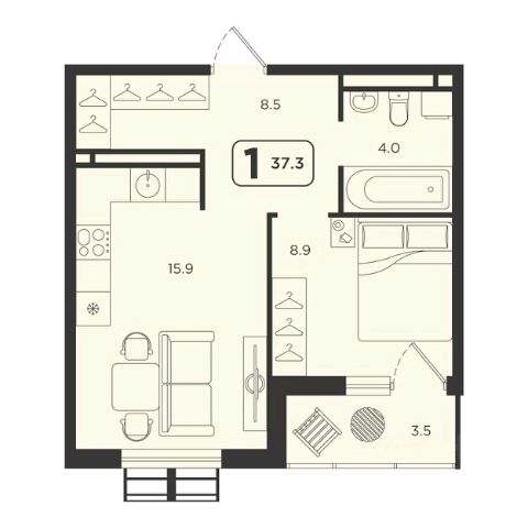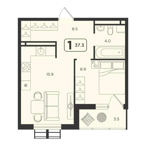 Продаётся 1-комнатная квартира в строящемся доме (ГП-2, секции 1, 2), срок сдачи: I-кв. 2027, общей площадью 37.3 кв.м., на 3 этаже. ЖК "Симфония" - новый проект комфорт-класса в центре Тюмени, будет расположен в пределах улиц Харьковская - Холодильная - Мельникайте."Симфония" - это комплекс из 6 домов переменной этажности в монолитно-каркасном исполнении, отделка фасадов выполнена с применением клинкерного кирпича и по технологии "мокрый фасад", что придает домам стильный и современный вид. Украшением района станет архитектурная концепция и подсветка домов ЖК "Симфония".Охраняемая закрытая территория комплекса с круглосуточным видеонаблюдением, двор без машин, все дома объединены пешеходным бульваром, на 1 этаже предусмотрена торговая галерея, детские площадки с многоуровневыми игровыми комплексами, воркаут зоной с безопасным прорезиненным покрытием.Бесплатный Wi-Fi во дворе, удобный вход в подъезды для маломобильных граждан и мам с колясками, колясочные, лапомойка для домашних питомцев, дизайнерские холлы подъездов, кладовые в подземном паркинге - все это будет реализовано в новом ЖК.Все квартиры с кухнями-гостиными, гардеробными, для любителей проводить время на свежем воздухе - квартиры с террасами.