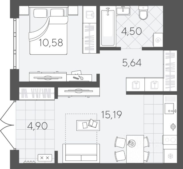Квартира 317 на 2 этаже. "Скандиа. Квартал в Слободе" — современная комплексная застройка в развитом районе, состоящая из двух домов переменной этажности и двух многоуровневых паркингов. Доминантами проекта станут две 24-этажные секции. Квартал расположен через дорогу от гимназии 4, рядом со сквером Вьюжный и лесопарком. В шаговой доступности 2 детских сада, остановка общественного транспорта, поликлиника, магазины и кофейни. Квартира с 1 спальней площадью 39,4 кв.м В квартире есть кухня-гостиная и отдельная спальня, предусмотрены ниши под шкафы-купе. Это позволяет оставить больше пространства для жизни. В кухне-гостиной можно поставить раскладной диван, который, при необходимости, будет дополнительным спальным местом.