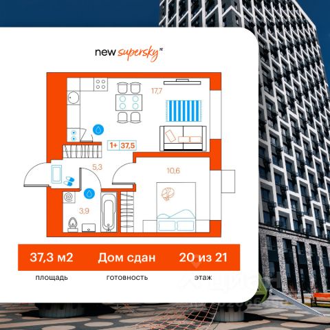 Продается полноценная однокомнатная квартира в шикарном ЖК комфорт класса SuperSky, расположенном в 15 минутах от центра города. Дом сдается летом 2025 года.