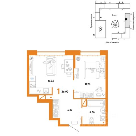 Продается 1комнатная квартира в новом ЖК "Юнион". Общая площадь квартиры 41,9 кв. м. Сдача — в 3 квартале 2024 года. Юнион - проект двух застройщиков всероссийского масштаба: Страны Девелопмент и Группы Эталон. Мы объединили опыт и компетенции в девелопменте, создании экологичной среды, разработке ландшафтного дизайна, коммерческой инфраструктуры и продуманных планировок. Результатом синергии станет комфортное пространство для жизни, отдыха и восстановления. Рядом два парка с хвойными и смешанными лесами — "Затюменский" и "Плехановский бор". Летом можно устраивать пикники, а зимой кататься по лыжным трассам. ОТДЕЛКА Квартиры сдаются с предчистовой отделкой. Все грязные работы выполнены: произведена разводка электричества и отопления; выполнена стяжка пола; стены выровнены "под маяк". В квартире установлены розетки, выключатели и радиаторы. На входе — надежная стальная дверь. Вам остается только выбрать материалы и начать ремонт Доступна опция "Ремонт от застройщика". Стоимость можно включить в ипотеку. Вы можете заказать один из трех цветовых вариантов: светлый, натуральный или тёмный. КУХНЯ С ТЕХНИКОЙ Теперь дополнительно к ремонту можно заказать кухню со встроенной техникой. Эргономику и функциональное наполнение разработали под каждую планировку. ПОЛНАЯ МЕБЛИРОВКА Больше не нужно тратить время даже на подбор, доставку и сборку мебели.Вы можете включить в стоимость квартиры с ремонтом полную меблировку. Что входит в меблировку? - Кухня с техникой и сантехникой - Диван - Кровать - Шкаф в спальне - Шкаф в прихожей Цены на квартиры указаны без учета скидок. На консультации менеджер подскажет, какие акции действуют, и как получить одобрение по ипотеке с низкой ставкой. Более подробная информация по телефону. Застройщик ООО СЗ "Страна-Эталон". Проектные декларации на сайте наш.дом.рф.