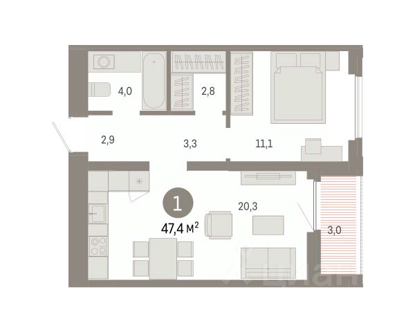 1-комн. квартира с предчистовой отделкой в ЖК "Зарека" на 2 этаже. Общая площадь: 43.8 кв.м., жилая: 9.7 кв.м., площадь просторной кухни-гостиной: 16.7 кв.м. Все окна выходят на одну сторону. В квартире один балкон, один совмещенный санузел. Наличие террасы в квартире дает возможность для обустройства дополнительной площади. Высота потолков 2.7 м. Дом монолитный, многоподъездный, переменной этажности, от 6 до 16 этажей. Квартира находится в 3-й секции высотой 9 этажей в корпусе 5-2. На этаже 11 квартир. В подъезде 1 пассажирский и 1 грузовой лифт. Окончание строительства - 4 квартал 2026 года. Оформление сделки по договору долевого участия. Квартира с кухней-гостиной и одной спальней в жилом районе "Зарека". Особенности планировки: свободная планировка, терраса. квартиры в нашей базе: ЗРК05.2-Ж3.2.1. Проект На планировочную структуру "Зареки" повлияла близость к автомобильному мосту Челюскинцев. Мы расположили жилые здания так, чтобы они постепенно удалялись от проезжей части. Приём напоминает лесенку: чем сильнее мост возвышается над участком застройки, тем дальше по отношению к нему стоят дома. Этот ступенчатый сдвиг позволил нам сформировать буфер между кварталами и оживлённой магистралью. Мы намерены высадить здесь высокие деревья и создать дополнительную защиту от дорожных шума и пыли. В границах нашего участка мы намерены разместить школу и два встроенных детских сада на 135 и 150 мест. Общественные пространства С севера на юг территорию будет пронизывать пешеходный бульвар. Мы мыслим это общественное пространство как главный центр притяжения. На нём будут сосредоточены основные детские игровые и спортивные зоны, места для встреч и спокойного отдыха. Он также сыграет роль мостика, ведущего к другим нашим проектам — "Европейскому кварталу" и "Дому у озера". Одна из базовых идей мастер-плана касается береговой линии. Сегодня озеленение этой территории носит стихииныи характер, а прямому доступу к Туре препятствует дамба. Мы хотим благоустроить пространства у воды и открыть их для людей. Архитекторы спроектировали систему многоярусных троп и спусков к реке, смотровые площадки и места для активного отдыха и пикников.