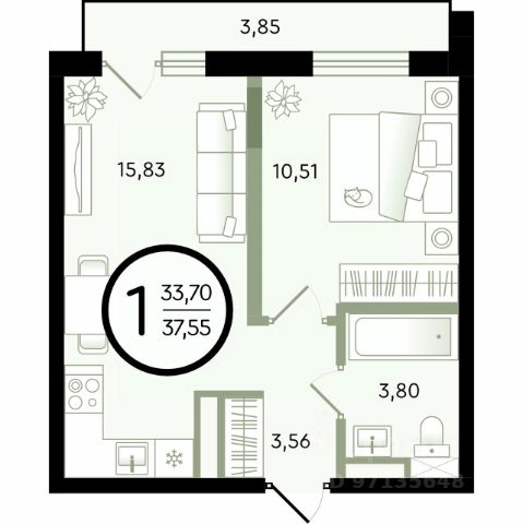 Продаётся 1-комнатная квартира в строящемся доме (ГП-14 (Александра Невского, 9)), срок сдачи: I-кв. 2029, общей площадью 28.39 кв.м., на 4 этаже. Новый малоэтажный жилой комплекс "Зеленые аллеи" от Девелоперской компании "Навигатор" расположен в Калининском районе Тюмени на ул. Бориса Быстрых.