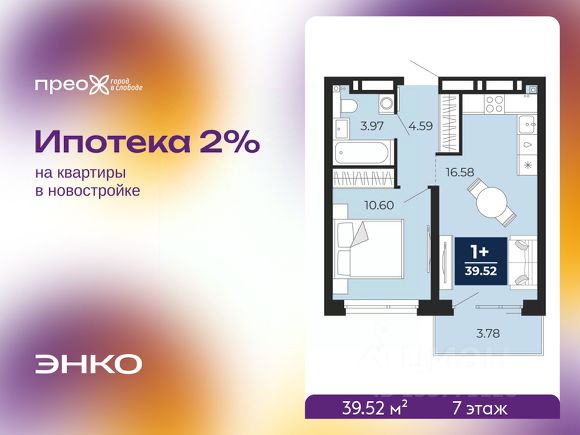 Торопитесь забронировать по этой цене, предложение ограничено! Стоимость квартиры указана со скидкой, ваша экономия составит 968,250 руб. Информация по телефону, наши менеджеры вам все расскажут. 1-комн. квартира с предчистовой отделкой в ЖК "Прео" на 6 этаже. Общая площадь: 42.02 кв.м., жилая: 11.57 кв.м., площадь просторной кухни-столовой: 18.89 кв.м. Все окна выходят на одну сторону. В квартире один балкон, один совмещенный санузел. Высота потолков 2.7 м. Квартира находится в корпусе 212. Дом монолитный, одноподъездный, высотой 21 этаж. На этаже 8 квартир. В подъезде 2 пассажирских и 1 грузовой лифт. Окончание строительства - 4 квартал 2026 года. Оформление сделки по договору долевого участия. Преображенский — один из самых привлекательных районов для жизни! Это полностью самостоятельный жилой район с точки зрения инфраструктуры. Преображенский находится между Московским и Червишевским трактами в квартале улиц Закалужская — Вьюжная — Александра Протозанова. Не нужно ждать, когда появится инфраструктура — переезжайте на всё готовое. Вблизи расположены действующие школа и детский сад. В этом году откроется еще один сад, а в следующем году — школа. По соседству с Преображенским запланировано строительство городского парка "Комарово" площадью 38 гектар. За 10 минут можно доехать на автомобиле до крупных ТРЦ: "Лента", "Кристалл", "Леруа Мерлен", "Метро" и "Ашан". С 2018 года в районе открыт Соседский центр — пространство, созданное для формирования добрососедской среды, совместного досуга, общения и реализации соседских инициатив. Здесь проходят встречи соседей, а также сами жители района организовывают мероприятия. Организатором такого события может стать любой желающий. В квартирах выполнена качественная предчистовая отделка. Гладкие стены с финишным выравниванием по маякам. Ровный потолок для установки натяжного потолка. Установлены пятикамерные окна с двойным стеклопакетом (3 стекла). Дизайнерские холлы с видеонаблюдением, безбарьерным и прозрачным входом всегда светло и спокойно. На первом этаже есть просторные колясочные, где все жители могут оставлять свои коляски и велосипеды. В Преображенском есть всё, что нужно для активного отдыха и занятий спортом. Мы сделали большое футбольное поле с безопасным покрытием. Также установили хоккейный корт, который оборудован по всем необходимым стандартам. Во дворах можно делать упражнения на специальных площадках с турниками. Весь район мы обустроили велодорожками, которые связаны в единый маршрут. У нас есть сухие фонтаны, бьющие из земли, деревья, веревки, сетки, скалодром, газон, песок и резинка — осталось просто дать своему ребенку право на свободную игру. По-настоящему хорошие дворы — это те, которые дети предпочитают соцсетям и телевизору. Аккредитация в банках: ПАО "Банк Уралсиб", "Сбербанк России", ПАО Банк "ВТБ", ПАО "Газпромбанк", ОАО "Альфа-Банк" и других.