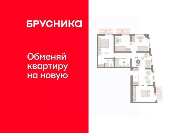 Двухкомнатная квартира с предчистовой отделкой в ЖК "Республики 205" на 8 этаже. Общая площадь: 100.59 кв.м., жилая: 29.7 кв.м., площадь просторной кухни-гостиной: 38.6 кв.м. Угловая квартира, идеально подойдет любителям тишины и панорамных видов. В квартире два балкона и одна лоджия, два совмещенных санузла. Терраса представляет собой роскошную зону отдыха, где вы на свой вкус можете создать атмосферу комфорта и уюта. Высота потолков 2.7 м. Купить квартиру можно с помощью программ покупки от застройщика Брусника: - ипотека по эксклюзивной ставке с помощью в получении положительного кредитного решения через сервис ипотечный брокер; - квартиры в рассрочку без процентов от застройщика Брусника; - обмен квартиры на новую. Получить одобрение ипотеки или рассрочку, а также осуществить обмен квартир можно онлайн. Дом монолитный, многоподъездный, переменной этажности, от 7 до 25 этажей. Квартира находится в 3-й секции высотой 9 этажей в корпусе 3-1. На этаже 6 квартир. В подъезде 1 пассажирский и 1 грузовой лифт. Окончание строительства - 1 квартал 2027 года. Оформление сделки по договору долевого участия. Район Проект расположен в границах улиц Пермякова, Энергетиков, Воровского и Республики. До центра города — 10 минут на машине. Рядом — автомобильная развязка на пересечении улиц Пермякова и Республики. В шаговой доступности есть школы, детские сады, поликлиники, крупный торговый центр, автовокзал и несколько скверов. Проект "Республики 205" — это проект комплексного развития территории, уникальный по своему наполнению. Переосмысляя бывшую территорию завода медицинского оборудования, мы создадим новое место силы — микрорайон, насыщенный деловой, развлекательной, рекреационной, игровой, образовательной и медицинской инфраструктурой. До каждого полезного сервиса здесь можно будет дойти за 15 минут. Локальными центрами "Республики 205" будут общественные пространства — скверы, парки, бульвары и площади. В границах нашего участка мы намерены разместить школу, рассчитанную на 1550 учеников, два детских сада на 300 мест и встроенный детский сад на 100 мест. В одном из цехов бывшего завода расположится креативный кластер "Кузница". Он станет площадкой для нескольких институций — галереи, лектория, книжного магазина-библиотеки, кинобара и точек креативного pop-up-ритейла. Пешеходные бульвары внутри района соединят между собой улицу ресторанов, детские и спортивные площадки, событийную площадь и летний кинотеатр. Идентификатор квартиры по базе застройщика: РСП03. #zMAWm9 Продается 2-комнатная квартира 100 м2 в Тюмени.