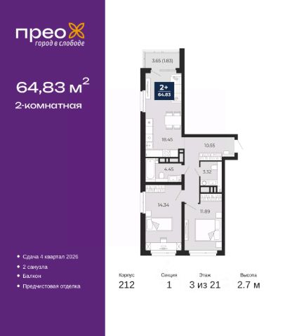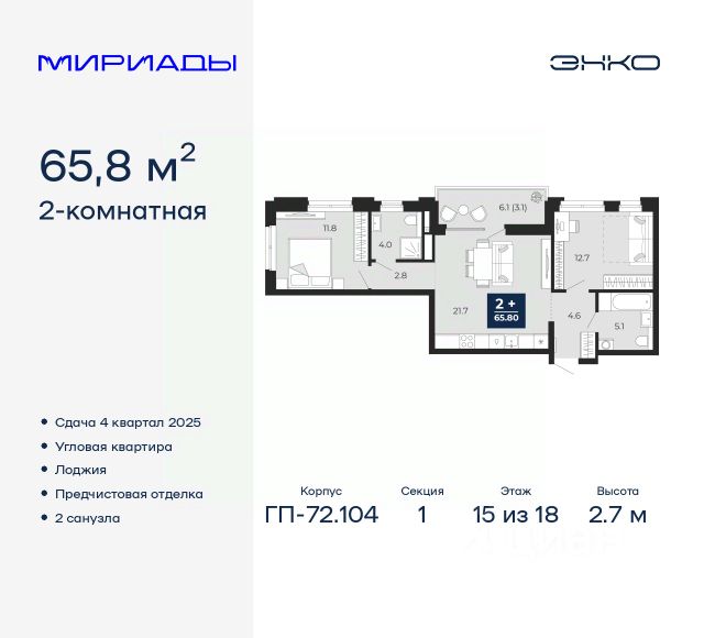 Эксклюзивные ипотечные условия. Квартира в рассрочку без процентов от застройщика. Дом будет сдан в 4 квартале 2025 года. Звоните, наши менеджеры вам все расскажут! 2-комн. квартира от застройщика с предчистовой отделкой в ЖК "Республики 205" на 6 этаже. Общая площадь: 69.69 кв.м., жилая: 21.4 кв.м., площадь просторной кухни-гостиной: 21 кв.м. Угловая квартира, идеально подойдет любителям тишины и панорамных видов. В квартире один балкон, один совмещенный и один раздельный санузел. Наличие террасы размером 8.2 кв.м. в квартире дает возможность для создания зон отдыха в кругу семьи и друзей. Высота потолков 2.6 м. Купить квартиру можно с помощью программ покупки от застройщика Брусника: - ипотека по эксклюзивной ставке с помощью в получении положительного кредитного решения через сервис ипотечный брокер; - квартиры в рассрочку без процентов от застройщика Брусника; - обмен квартиры на новую. Получить одобрение ипотеки или рассрочку, а также осуществить обмен квартир можно онлайн. Дом монолитный, многоподъездный, переменной этажности, от 9 до 17 этажей. Квартира находится в 1-й секции высотой 17 этажей в корпусе 1. На этаже 7 квартир. В подъезде 1 пассажирский и 1 грузовой лифт. Начало строительства - 2 квартал 2023 года. Окончание строительства - 4 квартал 2025 года. Оформление сделки по договору долевого участия. Район Проект расположен в границах улиц Пермякова, Энергетиков, Воровского и Республики. До центра города — 10 минут на машине. Рядом — автомобильная развязка на пересечении улиц Пермякова и Республики. В шаговой доступности есть школы, детские сады, поликлиники, крупный торговый центр, автовокзал и несколько скверов. Проект "Республики 205" — это проект комплексного развития территории, уникальный по своему наполнению. Переосмысляя бывшую территорию завода медицинского оборудования, мы создадим новое место силы — микрорайон, насыщенный деловой, развлекательной, рекреационной, игровой, образовательной и медицинской инфраструктурой. До каждого полезного сервиса здесь можно будет дойти за 15 минут. Локальными центрами "Республики 205" будут общественные пространства — скверы, парки, бульвары и площади. В границах нашего участка мы намерены разместить школу, рассчитанную на 1550 учеников, два детских сада на 300 мест и встроенный детский сад на 100 мест. В одном из цехов бывшего завода расположится креативный кластер "Кузница". Он станет площадкой для нескольких институций — галереи, лектория, книжного магазина-библиотеки, кинобара и точек креативного pop-up-ритейла. Пешеходные бульвары внутри района соединят между собой улицу ресторанов, детские и спортивные площадки, событийную площадь и летний кинотеатр. Идентификатор квартиры по базе застройщика: МЕД01-01-1-1. #2ZoCM2 2-комнатная квартира до 10 млн. рублей в Тюмени.
