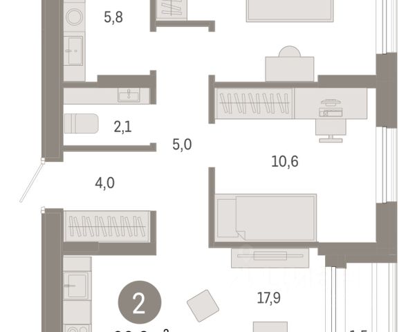 2-комн. квартира с предчистовой отделкой в ЖК "Айвазовский" на 2 этаже. Общая площадь: 61.3 кв.м., жилая: 26.3 кв.м., площадь просторной кухни-столовой: 18.6 кв.м. Квартира угловая, очень светлая, естественная вентиляция при открытии окон. В квартире один совмещенный санузел. Высота потолков 2.7 м. Дом монолитный, многоподъездный, переменной этажности, от 14 до 24 этажей. Квартира находится в 4-й секции высотой 18 этажей в корпусе ГП-8. На этаже 6 квартир. В подъезде 1 пассажирский и 1 грузовой лифт. Окончание строительства - 3 квартал 2026 года. Оформление сделки по договору долевого участия. Новый жилой район располагается в живописном месте на берегу Туры в центральной части города. Принципиально новое пространство для жизни в центре современного города для тех, чьи мечты сбываются, кто нацелен на постоянный рост, перемены к лучшему для себя и своих близких. Каждая деталь ЖК "Айвазовский" вдохновляет и заряжает на новые свершения: авторская архитектура, сбалансированная продуманная инфраструктура, дизайнерские дворы со спортивными и детскими площадками, парковые зоны с фонтанами, водный канал, украшающий центральный прогулочный маршрут района и многое другое. В 2019 года проект стал лауреатом престижной премии Urban Awards 2019 в номинации "Лучший строящийся региональный жилой комплекс бизнес-класса". Главная особенность Айвазовский - соседство разных архитектурных школ в рамках одного дома. Изысканная классика, выразительная эклектика и оригинальный модерн - жить в одном из таких домов настоящий повод для гордости. Айвазовский это идеальное сочетание комфорта, технологий и развитой инфраструктуры. Вход в подъезд возможен с улицы и со двора. Отправляясь на работу или за покупками, жители могут выйти с внешней стороны дома, а для прогулки с ребенком со стороны двора. Экологически чистые материалы и энергосберегающие технологии, качественное освещение общественных зон, видеонаблюдение по всей территории жилого района (в том числе в подъездах, лифтах и в подземном паркинге), закрытые дворы с доступом только для жителей Айвазовский. Часть домов в Айвазовский будут оснащены подземным паркингом. Востребованный в нашем климатическом поясе формат хранения автомобилей защитит собственность владельца в любое время года. Аккредитация в банках: ОАО "Альфа-Банк", "Сбербанк России", ПАО Банк "ВТБ", ПАО "Газпромбанк", ПАО "Совкомбанк" и других. #zsT0Fg Купить 2-комнатную квартиру до 10 млн. рублей в Тюменской области.