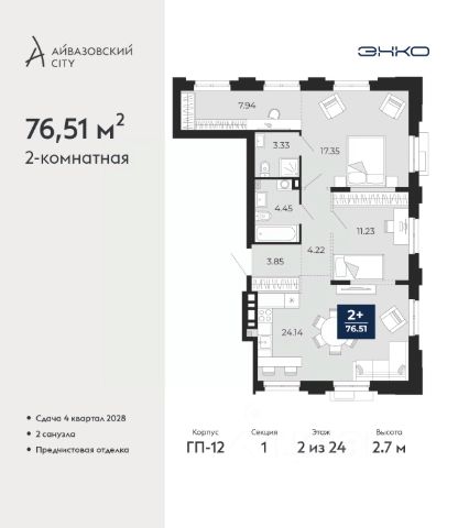 Двухкомнатная квартира от застройщика с предчистовой отделкой в Кварталы "На Минской" на 3 этаже. Общая площадь: 65.09 кв.м., жилая: 23 кв.м., площадь просторной кухни-гостиной: 21.3 кв.м. Комнаты изолированные, все окна выходят на одну сторону. В квартире одна лоджия, два совмещенных санузла. Высота потолков 2.7 м. Дом монолитный, многоподъездный, переменной этажности, от 7 до 11 этажей. Квартира находится во 2-й секции высотой 7 этажей в корпусе 2. На этаже 7 квартир. В подъезде 1 пассажирский и 1 грузовой лифт. Окончание строительства - 1 квартал 2027 года. Оформление сделки по договору долевого участия. Квартира с кухней-гостиной и двумя спальнями в кварталах "На Минской". Особенности планировки: балкон, предчистовая отделка, разнесённые спальни. квартиры в нашей базе: МНС02-Ж2.3.2. В сердце города Кварталы "На Минской" находятся в самом центре. За десять минут можно дойти до площади 400-летия Тюмени и Большого Драматического театра, Тюменского индустриального и медицинского университетов, спортивного комплекса "Строймаш", ТРЦ "Гудвин" и "Премьер", Тюменского технопарка. Поблизости много детских садов, школ и поликлиник. Пространство разного опыта Создавая кварталы "На Минской" мы вдохновлялись Хакскими дворами в Берлине и улицей Давида Агмашенебели в Тбилиси. И первые и вторая — яркие разнообразные пространства, сформированные прогрессивными архитекторами и притягивающие городских интеллектуалов. Престижная недвижимость здесь соседствует с барами, ресторанами, креативными кластерами и бюро, дизайнерскими лавками. Полезные улицы Кварталы "На Минской" свяжет сеть променадов, автомобильных проездов и велодорожек. Уличный фронт проекта мы сформируем с помощью аллейной посадки деревьев. Они создадут тень для ресторанов и кафе на первых этажах, визуально отделят проезжую и пешеходную части, снизят объём пыли и уровень шума. Мы реализуем проект в районе с развитой базовой инфраструктурой. И поэтому тщательно подошли к программированию коммерции, посчитав, что её основная задача — "закрывать" более высокие потребности жителей. Здесь может появиться пекарня с вкусными круассанами, турагентство на случай, если захочется перезимовать в Сочи, массажный кабинет, ресторан, когда надоело есть дома и многое другое. #25fFmm Продам 2-комнатную квартиру до 18 млн. рублей в Тюменской области.