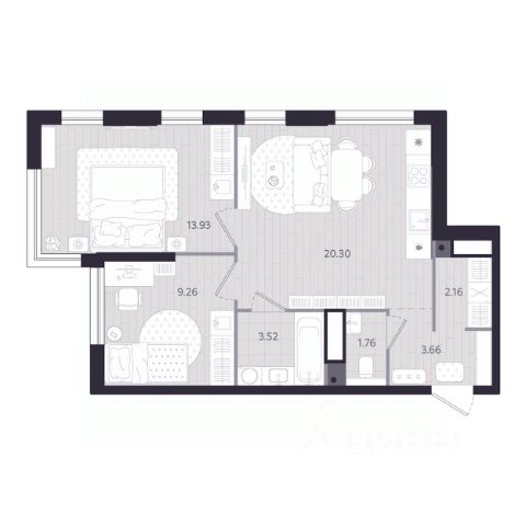 2-комн. квартира с предчистовой отделкой в ЖК "Республики 205" на 16 этаже. Общая площадь: 60.68 кв.м., жилая: 21.4 кв.м., площадь просторной кухни-гостиной: 18.3 кв.м. Угловая квартира, идеально подойдет любителям тишины и панорамных видов. В квартире одна лоджия, один совмещенный и один раздельный санузел. Высота потолков 2.6 м.
