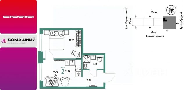 Новая квартира в ЖК "Домашний" напрямую от федеральной группы компаний "Страна Девелопмент". Финансовый партнер — банк "ДОМ.РФ". Продается 2комнатная квартира на 7 этаже от застройщика Страна Девелопмент. Площадь квартиры 31,34 кв. м. Жилой комплекс "Домашний" это первый цифровой район в Сибири, где жители заходят в парадные по Face ID, автомобили заезжают в паркинг по сканированию номера, а лифт автоматически спускается на первый этаж при открытии домофона. Даже во дворах — USB-розетки и беседки с подогревом. ПРЕИМУЩЕСТВА: -Школа, зеленый сквер и пешеходный бульвар прямо внутри квартала -Закрытые дворы у каждого дома для активного и спокойного отдыха -Охрана, видеонаблюдение 24/7 и доступ к камерам в мобильном приложении -Сквозные парадные с прозрачными входными группами, колясочными и велосипедными -Паркинг с въездом по считыванию номеров, системой контроля выбросов CO2, тележками для покупок и велопарковкой -Торговая галерея на первом этаже дома ОТДЕЛКА Квартиры сдаются с предчистовой отделкой: произведена разводка электричества и отопления, выполнена стяжка пола, стены выровнены "под маяк", установлены розетки, выключатели и радиаторы. ДИЗАЙНЕРСКАЯ ОТДЕЛКА При покупке квартиры в ЖК "Домашний" можно включить стоимость ремонта в ипотеку. Пять вариантов на выбор: Хлопковая нить, Серый шторм, Белый камень, Шалфей, Голубой вереск. СПОСОБЫ ПОКУПКИ: - ипотека - материнский капитал -100% оплата наличными Сотрудники "Страна Девелопмент" будут сопровождать вас на каждом этапе сделки, помогут получить одобрение по ипотеке или снизить ежемесячный платеж. 2-комнатная квартира, примерная площадь 30 м2 в Тюмени.