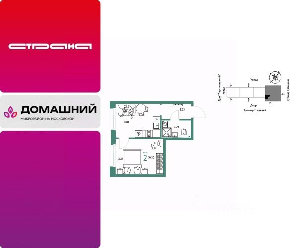 Новая квартира в ЖК "Остров-сад" напрямую от федеральной группы компаний "Страна Девелопмент". Финансовый партнер — Сбербанк России. Продается 2комнатная квартира на 2 этаже от застройщика Страна Девелопмент. Площадь квартиры 29,13 кв. м. ЖК "ОСТРОВ-САД" Жилой комплекс ЖК "Остров-сад" — новый квартал в районе ДОК в Тюмени недалеко от центра. Внутри ЖК планируется несколько школ и детсадов, торговая галерея, своя набережная, закрытые дворы-сады, несколько подземных и многоуровневых паркингов и пешеходный бульвар. Архитектура комплекса отсылает к истории ДОКа — отделка из красного кирпича, акцентные цвета штукатурки и необычная ступенчатая форма зданий. Всё для комфортной жизни на своём "острове" рядом с центром Тюмени. ПРЕИМУЩЕСТВА Квартиры с готовым ремонтом, возможность приобрести квартиру с кухонным гарнитуром и техникой. Развитое жилое пространство — закрытые дворы-сады, свои набережная и бульвар, торговая галерея на 1-м этаже, рядом детсады, школы и поликлиника. Служба охраны и видеонаблюдение в доме и во дворе 24/7. Несколько многоуровневых и подземных паркингов с охраной. ОТДЕЛКА Необходимые работы уже выполнены: подведены холодная, горячая вода и электричество, установлены батареи. В квартире не проводились отделочные работы: не выровнены стены и пол. ДИЗАЙНЕРСКАЯ ОТДЕЛКА В ЖК "Остров-сад" есть квартиры с готовым ремонтом. Пять вариантов на выбор в разных цветовых решениях. В ремонт также включены светильники, межкомнатные двери и даже кондиционер. Можно выбрать отдельно ремонт в ванной, для вас 4 стильных варианта с сантехникой. СПОСОБЫ ПОКУПКИ Сотрудники "Страна Девелопмент" будут сопровождать вас на каждом этапе сделки, помогут получить одобрение по ипотеке или снизить ежемесячный платеж. - ипотека - материнский капитал - 100% оплата наличными 2-комнатная квартира, примерная площадь 30 м2 в Тюмени.
