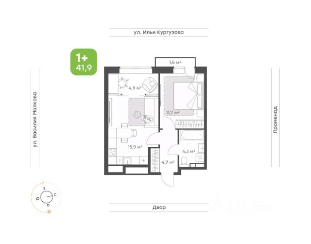 2-комн. квартира с европланировкой и предчистовой отделкой в ЖК "Мириады" на 11 этаже. Общая площадь: 40.1 кв.м., жилая: 21 кв.м., суммарная площадь гостиной-столовой с кухонной зоной: 15.5 кв.м. Европланировка, в просторной кухне-гостиной удобно как готовить, так и отдыхать. Комнаты изолированные, все окна выходят на одну сторону. В квартире одна лоджия, один совмещенный санузел. Высота потолков 2.7 м. Дом монолитный, двухподъездный, переменной этажности, от 14 до 18 этажей. Квартира находится во 2-й секции высотой 14 этажей в корпусе ГП-72.104. На этаже 8 квартир. В подъезде 1 пассажирский и 1 грузовой лифт. Окончание строительства - 4 квартал 2025 года. Оформление сделки по договору долевого участия. Вселенная бесконечных историй. Ранее невиданный Тюмени масштаб: территория 240 гектаров и 1 650 000 м² застройки. Мириады это город масштабных перемен и больших возможностей. Город зеленых рощ и зеркальных озер. Город для работы, учебы и развлечений. Город для детей и их родителей. Город для всех и каждого. Проект расположен в районе Мыс рядом с ТРЦ "Тюмень Сити Молл" в границах улицы Тимофея Чаркова, Тобольского тракта и объездной дороги. Срок полного освоения территории - до 2034 года. #2Mtddd 2-комнатная квартира, примерная площадь 40 м2 в Тюмени.