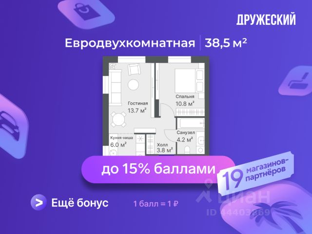 Продается 2-комн. квартира с европланировкой и предчистовой отделкой в ЖК "Мириады" на 1 этаже. Общая площадь: 40.7 кв.м., жилая: 20.7 кв.м., общая площадь гостиной-столовой с кухонной зоной: 15.4 кв.м. Европланировка, в просторной кухне-гостиной удобно как готовить, так и отдыхать. Комнаты изолированные, все окна выходят на одну сторону. В квартире одна лоджия, один совмещенный санузел. Высота потолков 2.7 м. Дом монолитный, двухподъездный, переменной этажности, от 14 до 18 этажей. Квартира находится во 2-й секции высотой 14 этажей в корпусе ГП-72.104. На этаже 8 квартир. В подъезде 1 пассажирский и 1 грузовой лифт. Окончание строительства - 4 квартал 2025 года. Оформление сделки по договору долевого участия. Вселенная бесконечных историй. Ранее невиданный Тюмени масштаб: территория 240 гектаров и 1 650 000 м² застройки. Мириады это город масштабных перемен и больших возможностей. Город зеленых рощ и зеркальных озер. Город для работы, учебы и развлечений. Город для детей и их родителей. Город для всех и каждого. Проект расположен в районе Мыс рядом с ТРЦ "Тюмень Сити Молл" в границах улицы Тимофея Чаркова, Тобольского тракта и объездной дороги. Срок полного освоения территории - до 2034 года. #2m7DCv Продам 2-комнатную квартиру 40 м2 (квадратных метров) в Тюменской области.