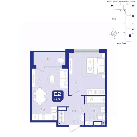 Продается 2-комн. квартира с европланировкой и предчистовой отделкой в ЖК "Мириады" на 1 этаже. Общая площадь: 40.7 кв.м., жилая: 20.7 кв.м., суммарная площадь гостиной-столовой с кухонной зоной: 15.4 кв.м. Европейская планировка, за счет большой площади кухни-гостиной квартира выглядит просторной и очень удобна для жизни. Комнаты изолированные, все окна выходят на одну сторону. В квартире одна лоджия, один совмещенный санузел. Высота потолков 2.7 м. Дом монолитный, двухподъездный, переменной этажности, от 14 до 18 этажей. Квартира находится во 2-й секции высотой 14 этажей в корпусе ГП-72.104. На этаже 8 квартир. В подъезде 1 пассажирский и 1 грузовой лифт. В настоящее время строительство завершено, дом сдан в 4 квартале 2025 года. Оформление сделки по договору купли-продажи. Вселенная бесконечных историй. Ранее невиданный Тюмени масштаб: территория 240 гектаров и 1 650 000 м² застройки. Мириады это город масштабных перемен и больших возможностей. Город зеленых рощ и зеркальных озер. Город для работы, учебы и развлечений. Город для детей и их родителей. Город для всех и каждого. Проект расположен в районе Мыс рядом с ТРЦ "Тюмень Сити Молл" в границах улицы Тимофея Чаркова, Тобольского тракта и объездной дороги. Срок полного освоения территории - до 2034 года. #z67Dcv 2-комнатная квартира, примерная площадь 40 м2 в Тюмени.